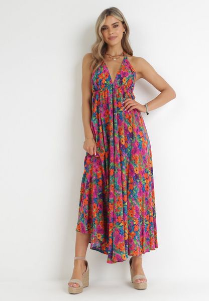 Rozkloszowana sukienka Enisa o długości maxi z wiązaniem na szyi i plecach. Ściągana pod biustem. Nie posiada podszewki. Wykonana z wiskozowej tkaniny w kwiaty. Idealna na wiosnę i lato.