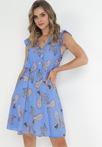 Niebieska Rozkloszowana Sukienka z Wiskozy we Wzór Paisley Marinetta