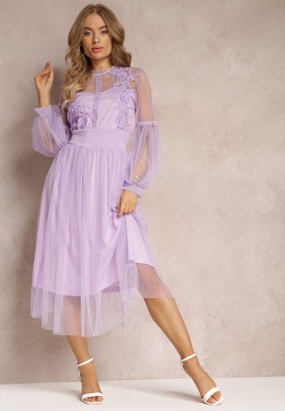 Fioletowa Tiulowa Sukienka Rozkloszowana z Koronką Nirthe