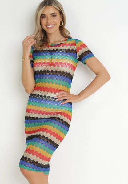 Wielokolorowa Ażurowa Sukienka Pudełkowa Jacques