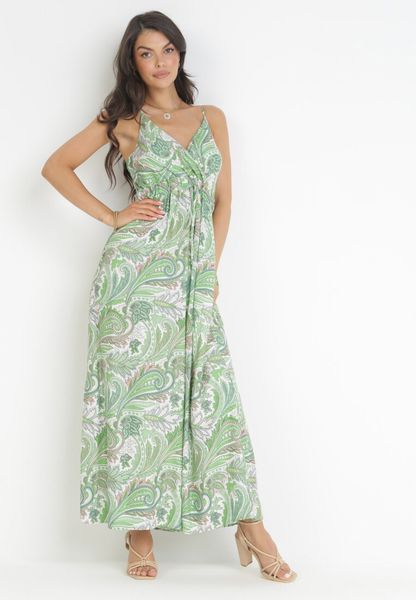 Zielona Sukienka na Ramiączkach z Kopertowym Dekoltem Eiliri