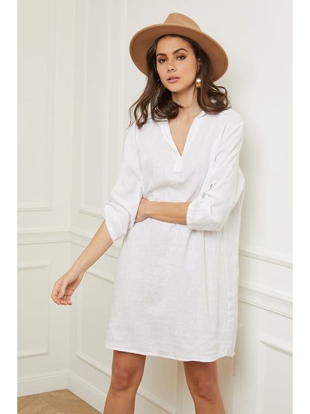 sukienki fleur de lin białe sukienki sukienki ze sklepu limango.pl sukienki mini odzież damska fleur de lin sukienki z klasycznym kołnierzykiem sukienki bez kołnierzyka sukienki bez ramiączek odzież damska limango.pl sukienki bez rękawów