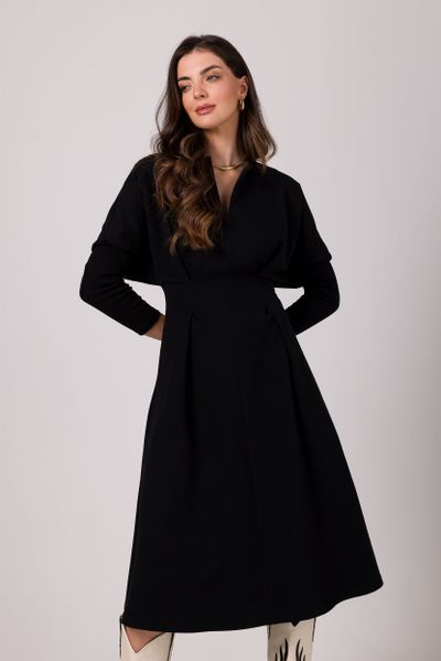 Rozkloszowana Sukienka z Zaznaczoną Talią – Czarna