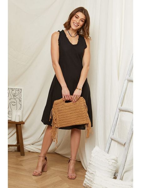 sukienki rodier lin odzież damska limango.pl czarne sukienki odzież damska rodier lin sukienki z falbankami sukienki bez ramiączek sukienki ze sklepu limango.pl sukienki bez rękawów sukienki bez kołnierzyka sukienki midi