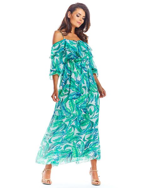odzież damska awama sukienki z kołnierzem typu carmen niebieskie sukienki sukienki awama sukienki bez kołnierzyka sukienki ze sklepu limango.pl sukienki bez ramiączek sukienki bez rękawów sukienki maxi odzież damska limango.pl