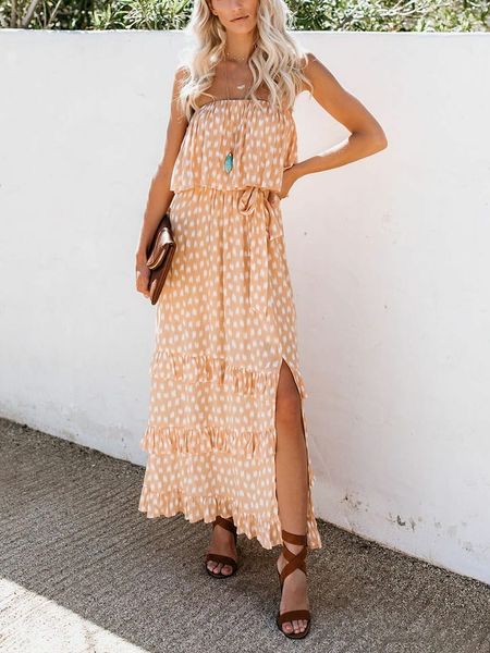 – dekolt: bandeau- w talii wiązanie: tak- dolny brzeg: z rozcięciem- detale: falbany- krój: litera A- wzór: na całościUwaga: Przy wyborze właściwego wariantu zaleca się korzystanie z tabeli rozmiarów.