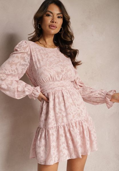 Różowa Rozkloszowana Sukienka Mini z Tkaniny Plumeti Marsane
