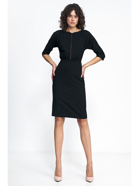 – dekolt: okrągły- zapięcie: suwak- krój: wąski- look: jednokolorowy
