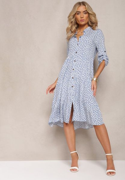 sukienki renee sukienki bez kołnierzyka sukienki koszulowe sukienki bez ramiączek odzież damska renee odzież damska renee.pl sukienki ze sklepu renee.pl niebieskie sukienki sukienki midi sukienki z koszulowym kołnierzykiem