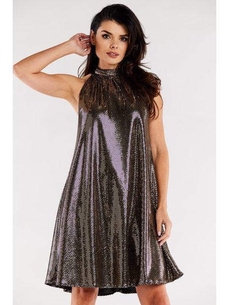 – dekolt: okrągły- zapięcie: guzik na plecach- powierzchnia: błyszcząca- krój: prosty- look: jednokolorowy