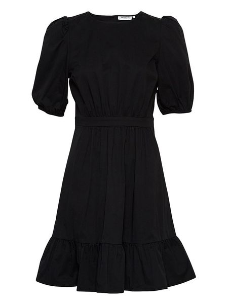 sukienki z falbankami sukienki moss copenhagen sukienki midi sukienki z dekoltem na plecach sukienki bez ramiączek sukienki bez rękawów odzież damska moss copenhagen czarne sukienki sukienki z okrągłym kołnierzem sukienki rozkloszowane
