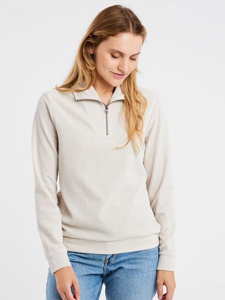 – kołnierz: stójka- zapięcie: skrócony zamek błyskawiczny- ściągacz: zakończenia rękawów, dolny brzeg- look: prążkowany, jednokolorowy- krój: prosty