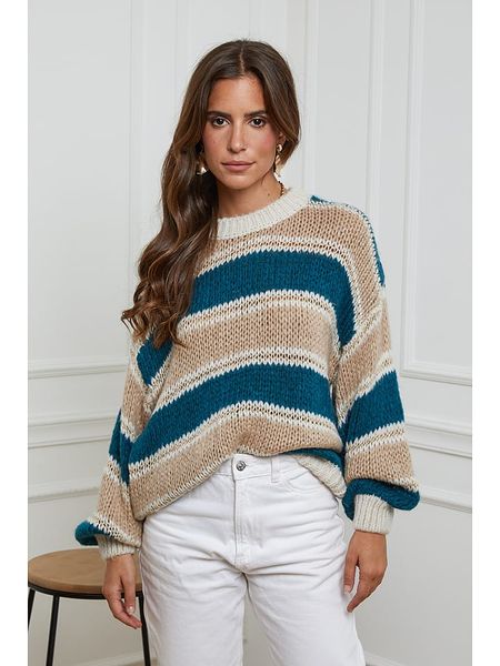 – dekolt: okrągły- rękaw: bufiasty- wzór splotu: luźny- krój: oversized- wzór: paskiWskazówka: Na metkach odzieży tej marki znajdują się rozmiary francuskie. Rozmiarówka została przez nas przeliczona. Podane do wyboru warianty rozmiarów odpowiadają standardowym europejskim rozmiarom konfekcji. Prosimy zapoznać się z zamieszczonym objaśnieniem rozmiarów: