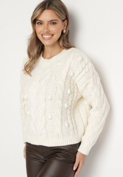 Jasnobeżowy Sweter z Wiskozą i Wełną Aplikacją 3D i Tłoczeniem Vaishira
