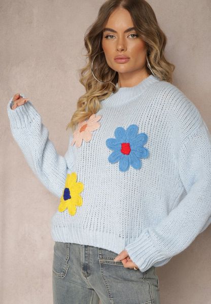 Jasnoniebieski Sweter z Wiskozą i Kwiatowym Motywem Labrienna