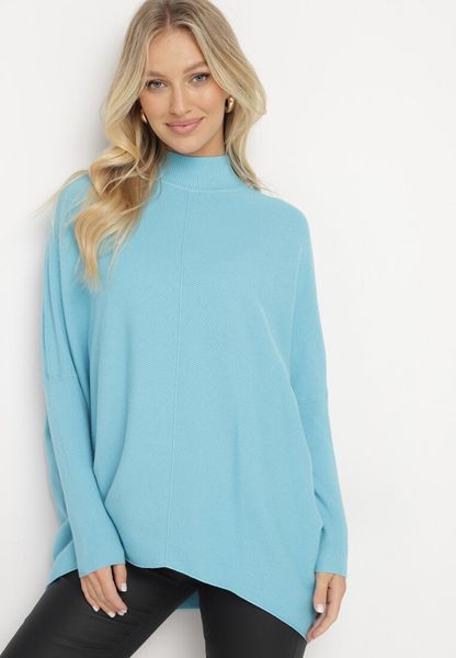 Jasnoniebieski Sweter Typu Nietoperz z Półgolfem Lekko Asymetryczny Vitiella
