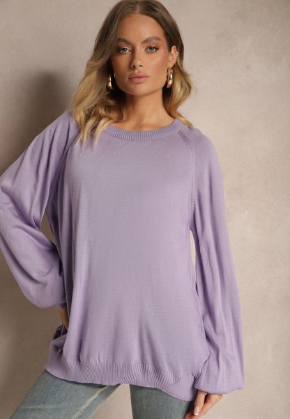 Fioletowy Sweter Oversize Ozdobiony Szerokimi Ściągaczami Anittia