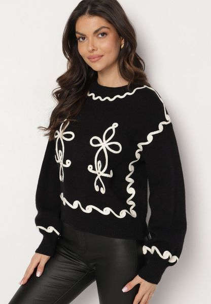 Czarny Sweter z Wiskozą Ozdobiony Haftem Senorwen