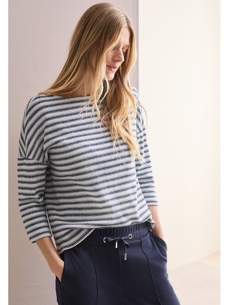– dekolt: łódka- wzór splotu: luźny- krój: luźny- wzór: paski