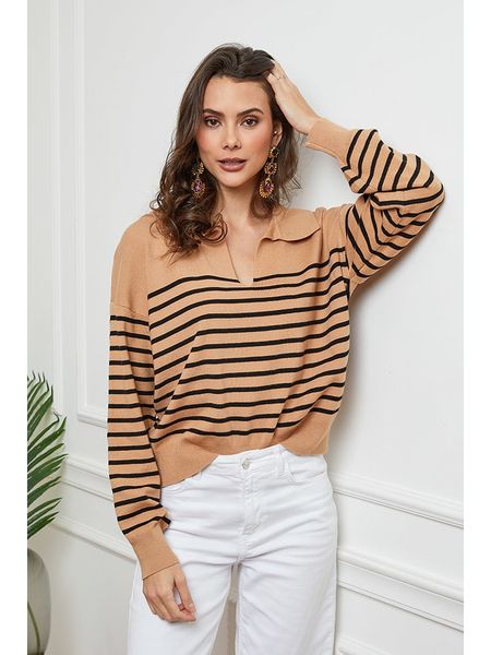 – kołnierz: kent- dekolt: V- krój: luźny- wzór: paski