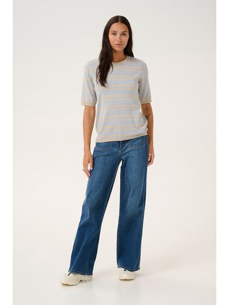 – dekolt: okrągły- ściągacz: dekolt, zakończenia rękawów, dolny brzeg- długość rękawa: półdługi- krój: prosty- wzór: paski