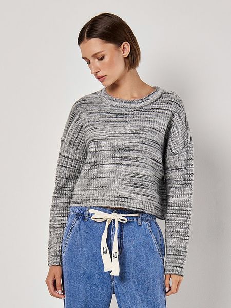 – z dodatkiem wełny- dekolt: okrągły- krój rękawów: nietoperz- krój: cropped- wzór: melanżowy