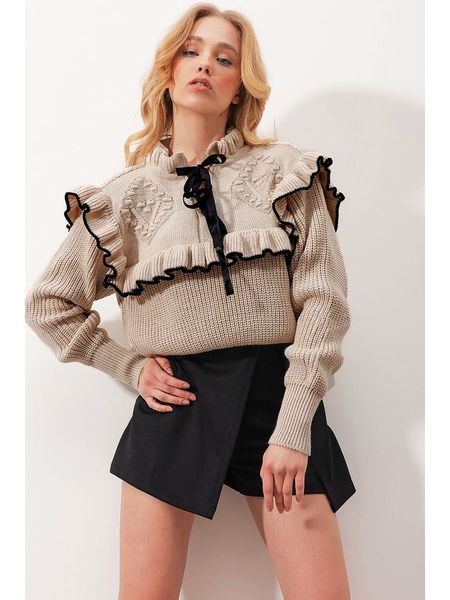Happiness Istanbul Sweter w kolorze beżowym rozmiar: onesize