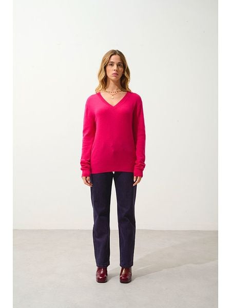 – czysty kaszmir- dekolt: V- ściągacz: dekolt, zakończenia rękawów, dolny brzeg- krój: prosty- look: jednokolorowy