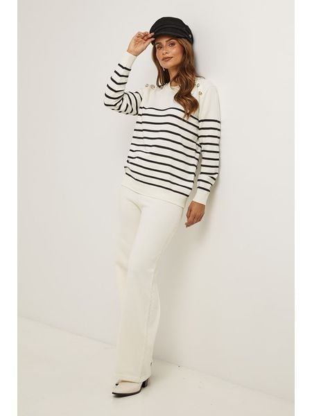 – dekolt: okrągły- ściągacz: dekolt, zakończenia rękawów, dolny brzeg- detale: ozdobne guziki- krój: prosty- wzór: paskiWskazówka: Na metkach odzieży tej marki znajdują się rozmiary francuskie. Rozmiarówka została przez nas przeliczona. Podane do wyboru warianty rozmiarów odpowiadają standardowym europejskim rozmiarom konfekcji. Prosimy zapoznać się z zamieszczonym objaśnieniem rozmiarów: