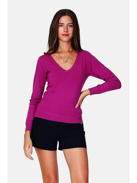 – z dodatkiem kaszmiru- dekolt: V- ściągacz: dekolt, zakończenia rękawów, dolny brzeg- krój: wąski- look: jednokolorowyUwaga: Na metkach odzieży tej marki znajdują się rozmiary francuskie. Rozmiarówka została przez nas przeliczona. Podane do wyboru warianty rozmiarów odpowiadają standardowym europejskim rozmiarom konfekcji. Prosimy zapoznać się z zamieszczonym objaśnieniem rozmiarów.