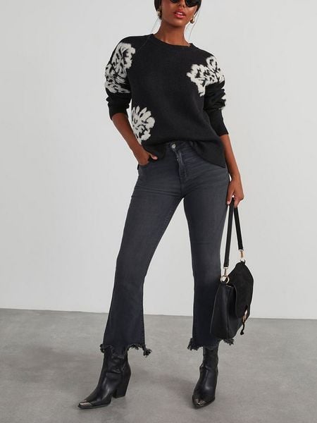– dekolt: okrągły- ściągacz: dekolt, zakończenia rękawów, dolny brzeg- dolny brzeg: z rozcięciem- krój: prosty- wzór: kwiatowy
