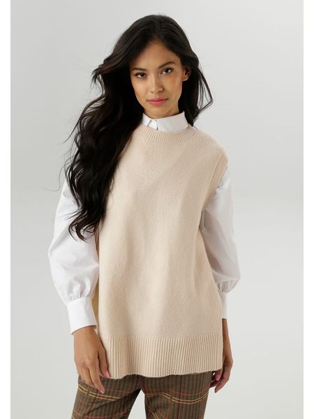 swetry bez rękawów swetry ze sklepu limango.pl brązowe swetry swetry bez ramiączek odzież damska limango.pl swetry aniston odzież damska aniston