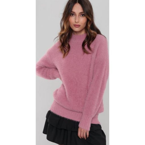 Sweter Merrill o klasycznym kroju, z okrągłym, płytkim dekoltem i długim rękawem. Tył delikatnie dłuższy. Wykonany z materiału z długim włosiem, idealnie wpisze się w looki na chłodniejsze dni. Ponadczasowy i uniwersalny, stanie się stałym elementem Twoich stylizacji.