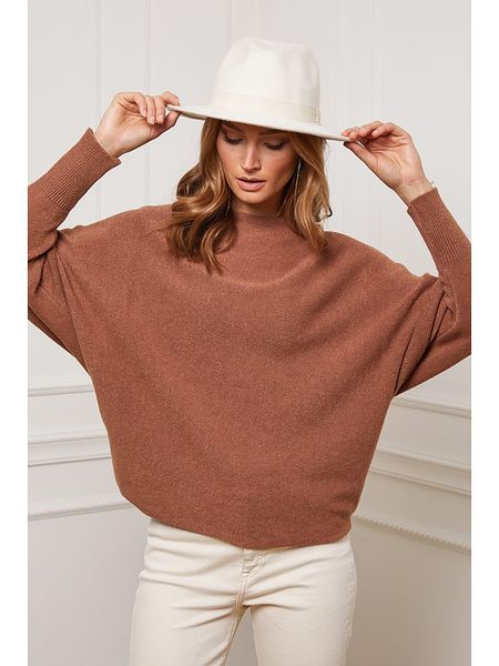 – z dodatkiem kaszmiru- dekolt: łódka- krój rękawów: nietoperz- ściągacz: zakończenia rękawów- krój: luźny- look: jednokolorowy