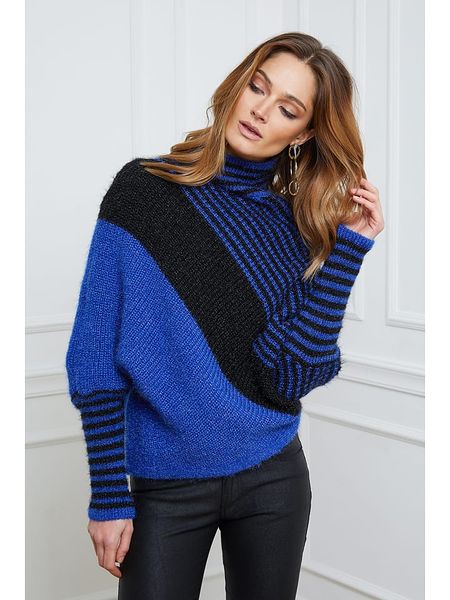 – kołnierz: stójka- krój rękawów: nietoperz- wzór splotu: luźny- krój: luźny- wzór: paski
