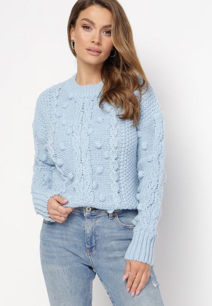 Niebieski Sweter z Wełną i Bawełną Ozdobiony Grubym Splotem Numike