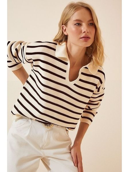 – kołnierz: kent- dekolt: V- krój: luźny- wzór: paski