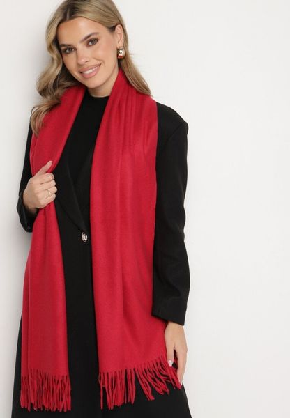 Bordowy Szalik z Tkaniny Wykończony Frędzlami Teofilla