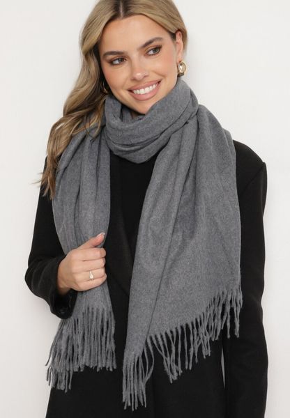 Szary Szalik z Bawełną i Wiskozą Ozdobiony Frędzlami Siadortia