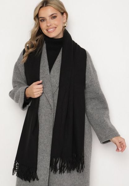 Czarny Szalik z Bawełną i Wiskozą Ozdobiony Frędzlami Siadortia