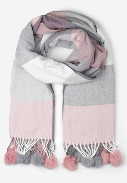 Różowy Prostokątny Szalik z Kolorowymi Pomponami Komo