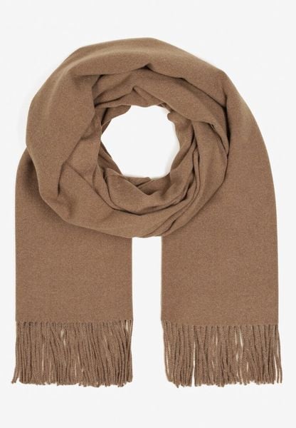 Ciemnobeżowy Szalik Długi z Frędzlami z Domieszką Wełny Torilisa