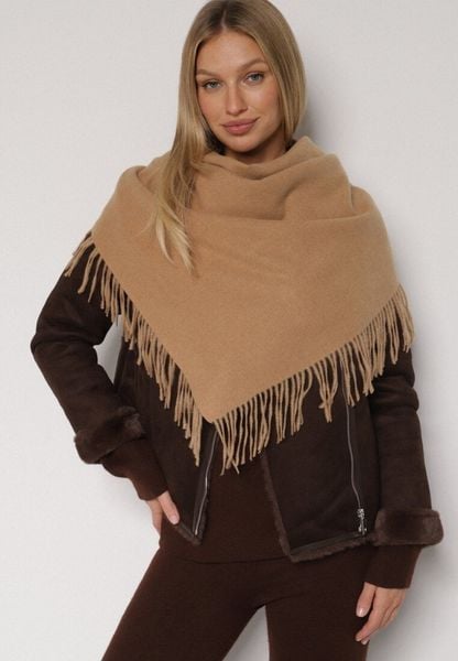 Brązowy Trójkątny Szalik z Wiskozy i Bawełny z Frędzlami Vetirala