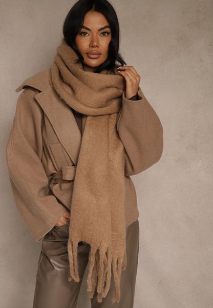Brązowy Szalik Ozdobiony Frędzlami Owedela
