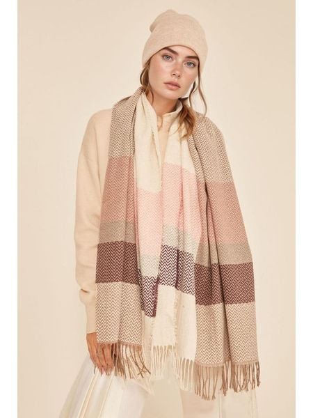 – ogrzewający i delikatny dla skóry materiał- frędzelki: długie- wzór: colour blocking
