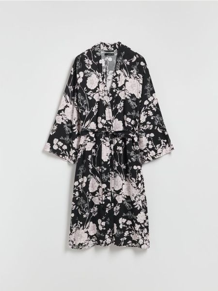 Wzorzysty szlafrok z wiskozy – czarny
