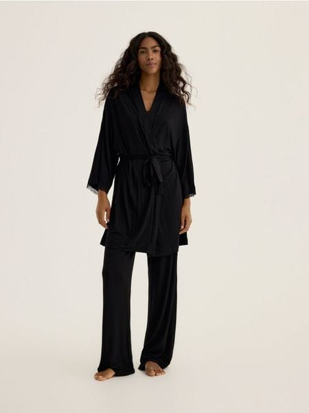 Szlafrok z koronką – czarny