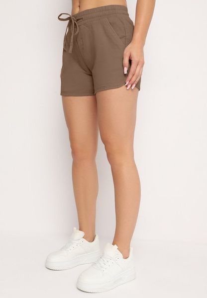 Ciemnobeżowe Bawełniane Szorty z Gumką w Talii Cazorea