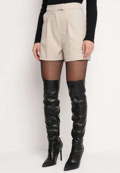 Beżowe Garniturowe Szorty z Wiskozą z Wysokim Stanem i Zakładkami Rievere