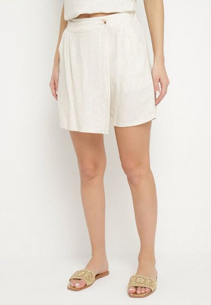 Beżowe Spódnico-Spodenki z Lnem Zdobione Zakładką Salloril
